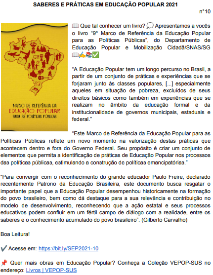 V SENAPOP - Seminário Nacional de Pesquisa em Educação Popular