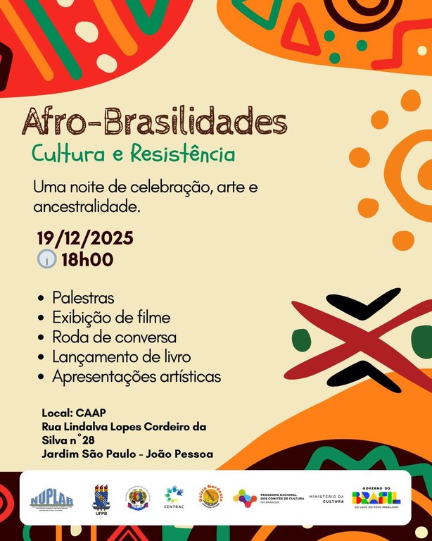 Comitê de Cultura da Paraíba em parceria do Nuplar realizaram o evento Afro-brasilidades